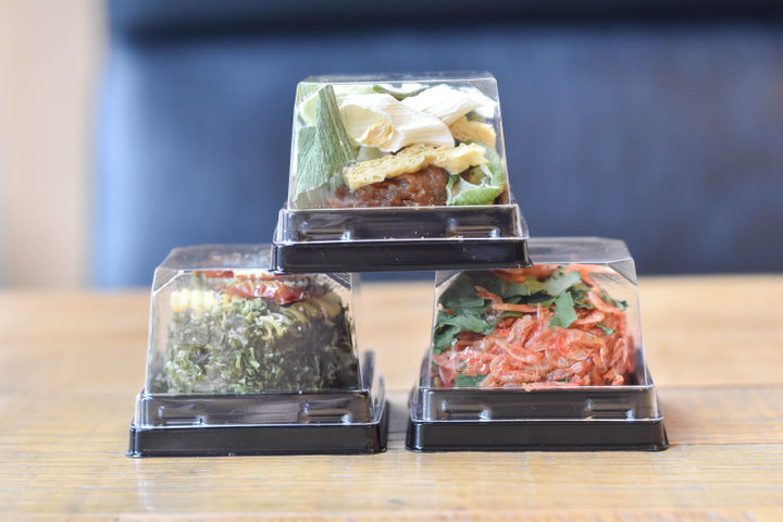 最後に選ぶのは、ご飯(226円)。長野県産信米コシヒカリや新潟県産五十穀米など全4種類があり、分量は大・中・小から選べ、ご飯おかわり1杯は無料。ご飯もおかずもその日の体調や気分に合わせて選べるように、との配慮からこのようなスタイルにしているそうです。