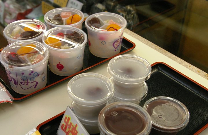 店頭ではあんみつ390円や水まんじゅう140円などを販売