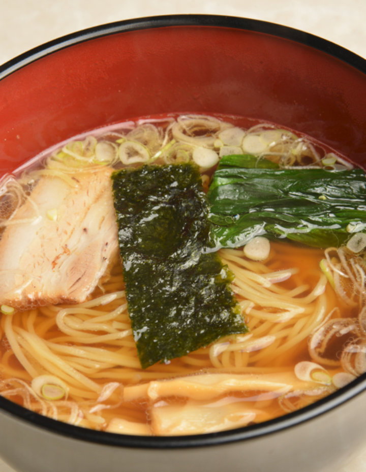 この日は限定メニューの「冷やし中華」をオーダー。毎年、気候が暖かくなる5月からスタートし、残暑が厳しい9月頃まで味わうことができます。 透明感がある中華麺は、仙台の製麺所から取り寄せている特注品。ほど良くコシがあり、つるんとした喉ごしが楽しめます。麺の上には、きゅうり、卵、ハム、すいかなど、冷やし中華の定番具材をトッピング。さっぱりとした醤油味のタレは、先代からレシピを受け継いだかつおの出汁が効いたスープに生醤油という、シンプルな味付けです。タレがからんだ冷えた麺とトッピングの大きく輪切りされたレモンの清涼感が、夏にぴったり!