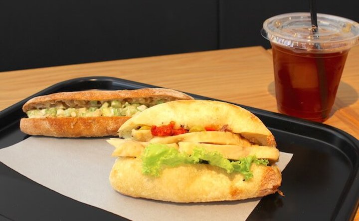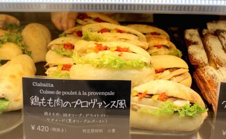 この日、購入した「鶏もも肉のプロヴァンス風」は、新宿店時代からの人気メニューを5月末に復活させたもの。チャバタパンに、鶏もも肉と、ドライトマト、レタス、緑オリーブがサンドされ、蒸し上げられた鶏もも肉は柔らかくジューシーで、存在感抜群!店内で手作りされる「タプナード」と呼ばれる黒オリーブのペーストの塩気と風味が良いアクセントとなっていました。