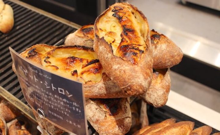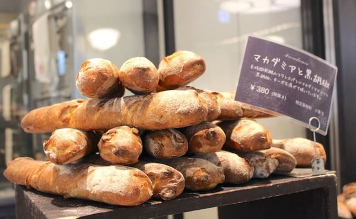 バゲットだけでも、常時6種類焼き上げられ「バゲット・シトロン」や「マカダミアと黒胡椒のバゲット」など、好奇心をくすぐられる素材の組み合わせのパンがずらり。積み上げられた焼きたてバゲットの前で思わず足が止まってしまいます。