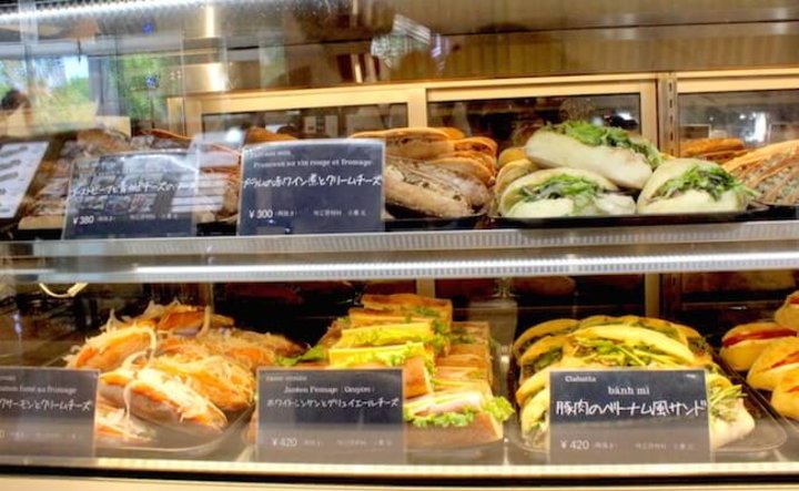 レジ近くのショーケースで目をひくのが、バゲットやチャバタというイタリア系パンを使った彩り豊かなサンドイッチたち。「フランス料理をもっと手軽に楽しんでもらいたい」という思いから、サンドイッチにすることにしたのだそう。今では、約20種類ものサンドイッチが並びます!