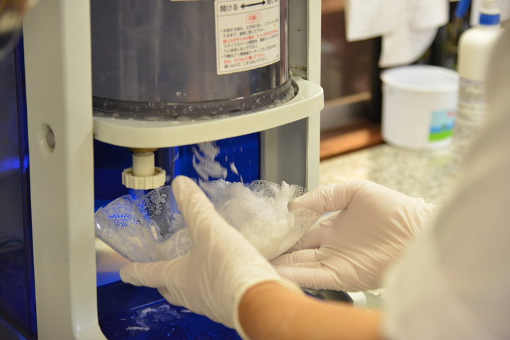 ふわふわの食感を出すため、氷を少し溶かしてから削る