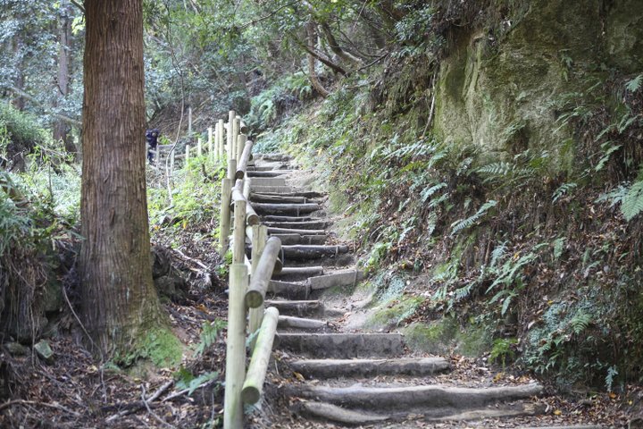 いくつかある大文字山の山頂への道のりのうち、初心者におすすめなのが世界遺産・銀閣寺の北側にある登山口から登るルート。整備されているので、登山に慣れていない人も安心です。緑に囲まれた参道を歩けば気分もリフレッシュ。木漏れ日が気持ちよく降りそそぐ中を進みます。