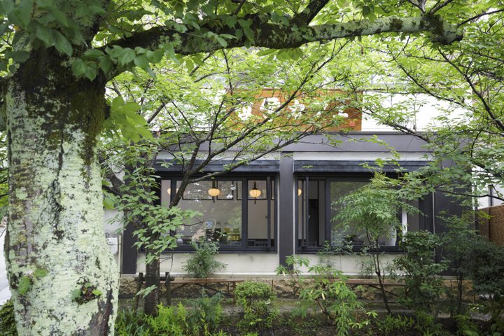 下山した後は、銀閣寺の南を通る散策路「哲学の道」へ。10分ほど歩くとフランス人オーナーが手がけるカフェ「Philosophy Café」(フィロソフィー カフェ)が見えてきます。2階建ての店舗には、テラス席や大きな窓際の席などがあり、思い思いの席でくつろげます。