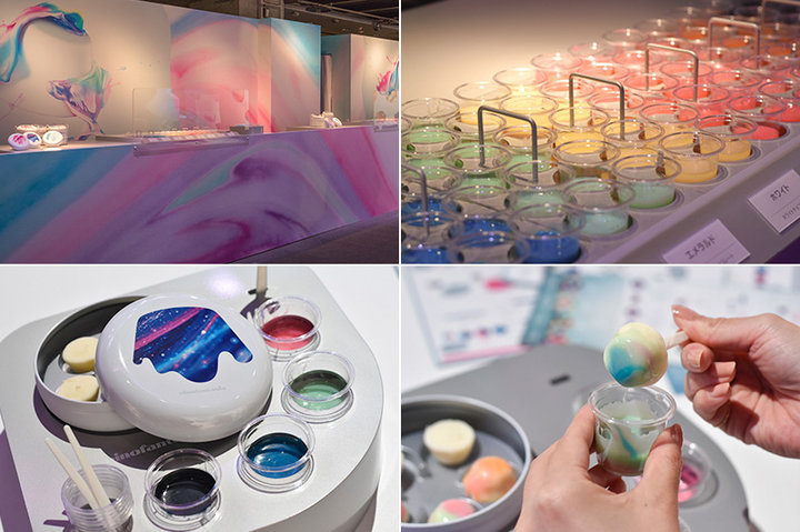 オリジナルピノの作り方はとっても簡単♪ まず、カウンターで8色のチョコレートソースから4色を選んで、キットを受け取ります。 席についたら、自由に色を混ぜて、好きな模様をつくりましょう。 次はチョコレートソースにピノアイスをディップして、自分だけの「ピノ」をカラーリングしていきます。カラーリングした「ピノ」を pinofantasia限定缶にセットし、6粒揃ったら完成です。 限定缶は体験の記念に持ち帰ることができますよ。