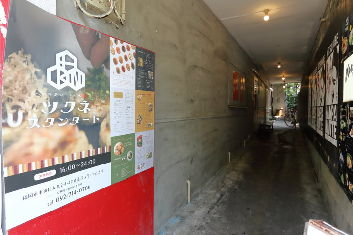 西鉄福岡(天神)駅から徒歩5分。カフェや居酒屋など、多数の人気店が軒を連ねる大名エリアの隠れ家的な路地に「ツクネスタンダード」はあります。