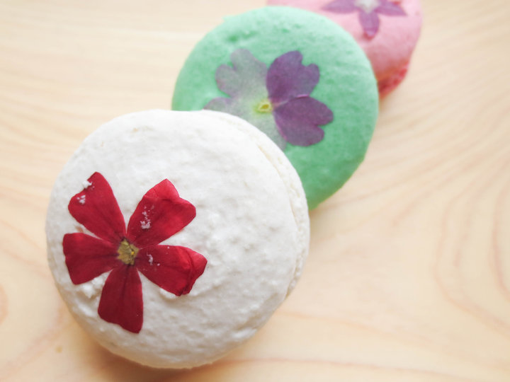 カラフルでひと口サイズがかわいいフランスの伝統菓子、マカロン。「オフク」ではエディブルフラワーを飾った華やかなマカロンに注目です。 ガナッシュは、パッションフルーツのクリーム×オレンジピール、ローズマリーが香るいちごクリーム、そしてモヒートをイメージしたライムとミントのクリームというさわやかなラインナップ。味わいや色合いなど、季節ごとに新しい組み合わせに出会えるのもすてきです。