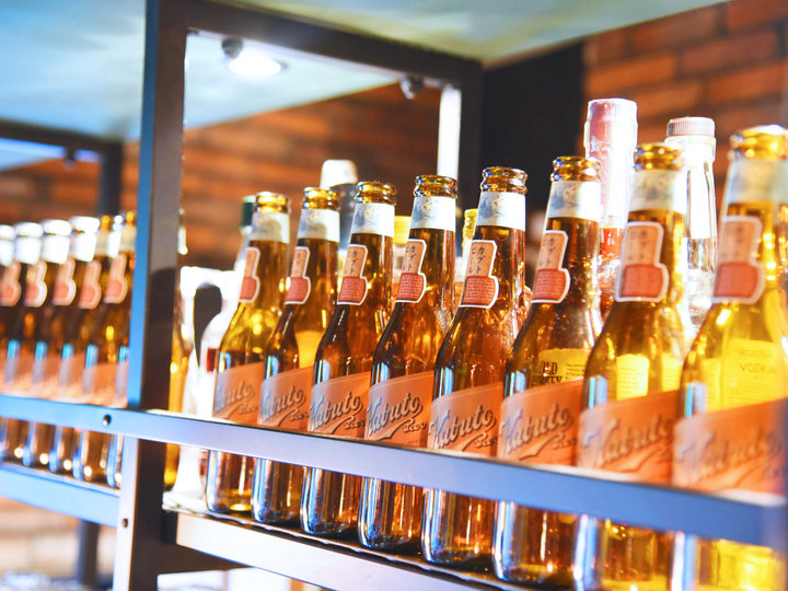 納屋橋TWILOでは毎週、スタッフが製造工場のある半田市に出向いて、出来たての生ビールを仕入れています。 生カブトビールは、ワインに近しい味わいの黒ビール「明治」、麦の味が香ばしいクラシックラガーの「大正」の2種類があり、時期により交替で提供しています。 ビールのほか、グラスワインやカクテルなどのアルコール類やソフトドリンク、フードメニューも充実。人気のおつまみはメキシカンナチョスで、ナチョスの上にキャベツとチーズがふんだんに乗ったボリュームたっぷりの一品です。