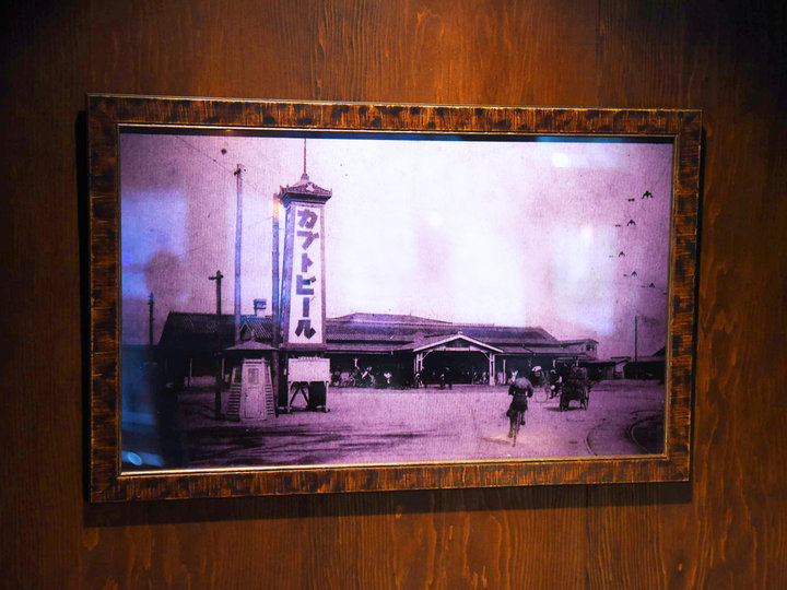 しかし、どうしてここ名古屋でカブトビールを提供しているのでしょうか。 実は、このお店がある納屋橋のすぐ側にかつてカブトビールの営業拠点があり、納屋橋のランドマーク的存在であったそうです。店主の高山さんは、そんな“納屋橋のシンボル”を復活させたいという思いで、ご自身の額縁店内にカブトビールが飲めるこの場所を作りました。