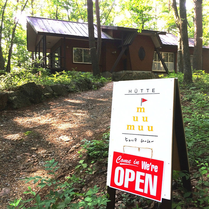 紅葉で有名な高瀬渓谷の入り口。別荘地・高瀬ハイランド内の小道を上っていくと、茶色の平屋が現れます。看板には、赤い旗のマークに黄色い「muumuu」の文字。ここ『ヒュッテムームー』は、春から秋の週末の朝だけオープンするカフェです。メニューは朝ご飯のみ。天然酵母も自分で起こし、もっちりと焼き上げた丸いパン、平飼いの卵を使った完璧なフォルムの目玉焼き、モカ・イルガチェフの豆をハンドロースターで焙煎したコーヒー。ベーコンもここで燻製しています。「自分が食べたい朝ご飯を出したい」とカフェを始めたのは、オーナーの村岡利恵氏です。
