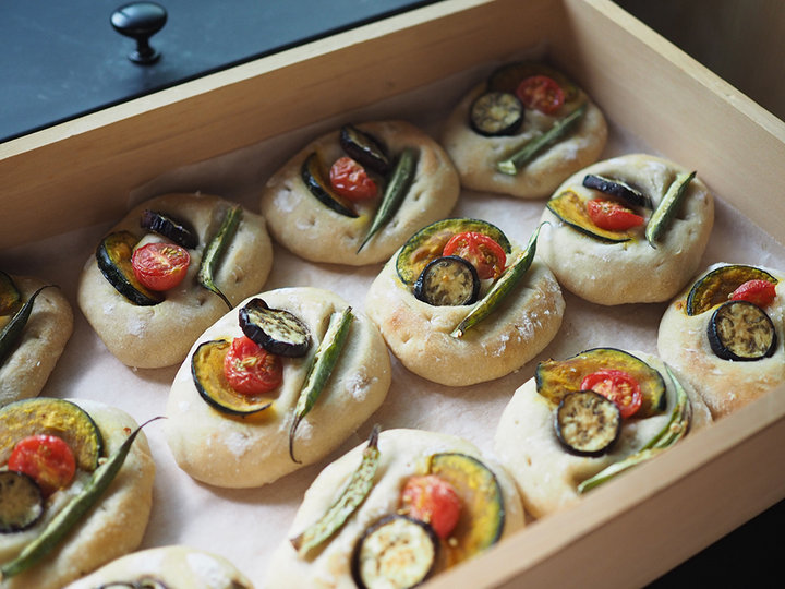 丸パンの予約販売も行う。写真はイベントに出店した時の夏野菜のフォカッチャ。
