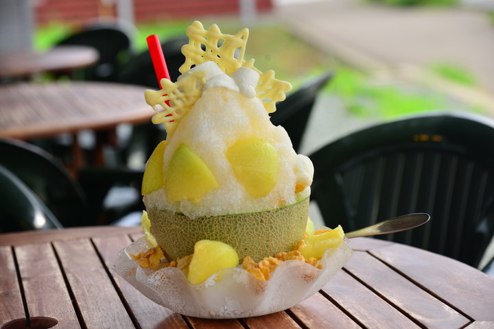 毎年6月下旬頃から9月中旬頃まではかき氷も登場し、名物になっています。生クリームやチョコレートをぜいたくに使ったかき氷で、見た目もフォトジェニック。オーダーを受けてからメロンの実をくり抜き自家製シロップ、氷、シロップ、メロン…と層になるように重ねる「まるごとメロン」が人気です。
