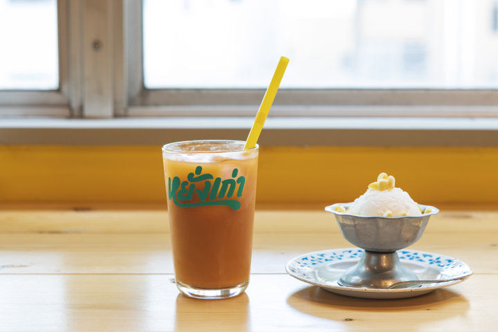 ゲーンハンレーでローカルを体感したら、タイスイーツでもっとディープな世界へ。コンデンスミルクをブレンドした「タイティー」や、自家製の「ココナッツミルクアイス」も、村松さんが現地で触れた日常の味だそう。