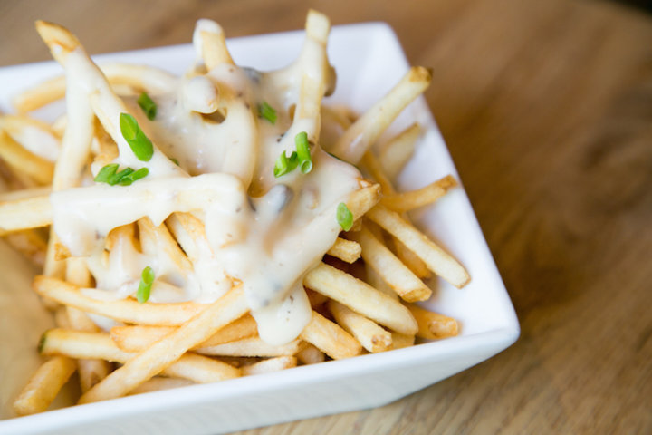 『UMAMI BURGER』のフライドポテトは、細いのが特徴で「シン(thin=薄い、細い)フライ」。今回は、人気の「トリュフフライ」もオーダー。「シンフライ」にトリュフチーズ、トリュフソルト、チャイブ(西洋のハーブでネギのような野菜)をのせています。とろっととろけたチーズと、トリュフの香りが広がり、ついつい止まらなくなる味です。 そのほかにも、サラダを始めお酒と一緒につまめるピリ辛系の1品料理など、サイドメニューも豊富!