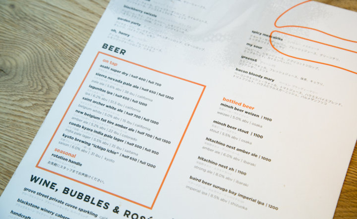 クラフトビールだけでも7〜8種類と、ビール好きの方もうれしいラインナップ。メニューを時間で区切っていないので、11時のオープンからお酒が飲めるのもうれしいですね。 「迷ったときは、その日の気分や、苦味があるものやあっさりしたものがいいなど、好みをおっしゃっていただければアドバイスいたしますよ!」と長岡さん。