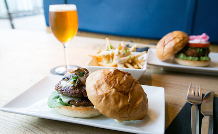 たっぷりのアボカドに、ファラフェルパティ、トマトにタジキソース(ギリシャ風のヨーグルトベースのソース)、レッドオニオンをのせて。野菜たっぷりでヘルシーかつ、ひよこ豆のパティは食べ応え抜群です! そのほかにも、ミニサイズのハンバーガー3種の食べ比べができる「スライダートリオ」や、チーズバーガー系が人気だそうです。