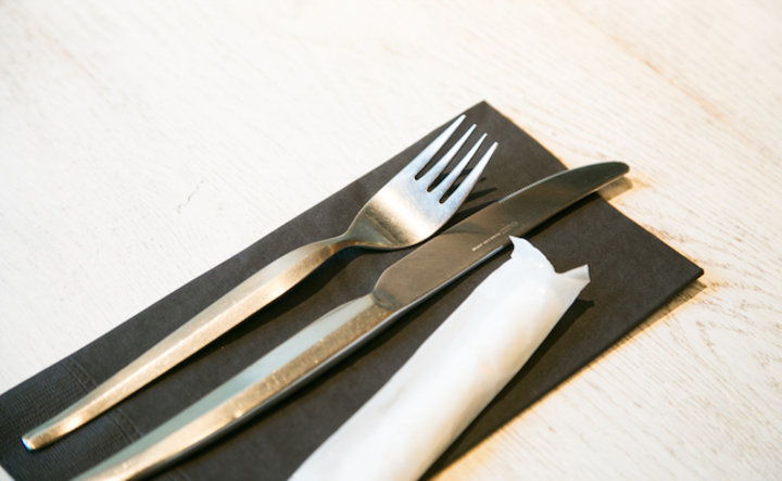 まず特徴として、テーブルにセットされたナイフとフォーク。ロサンゼルスでは、こうしたナイフとフォークでいただくスタイルのお店は少なくないのだとか。 「私たち『UMAMI BURGER』は、バンズ以外はすべて手作りで、手間ひまかけて作っています。お肉の焼き加減もビーフパティの焼き加減はレアからエクストラウェルダンまで6段階設けていて、お好みに合わせてお選びいただけます!」と長岡さん。そんなこだわりが詰まったハンバーガー、もちろんがぶっと食べてもおいしいですが、せっかくならナイフとフォークのロサンゼルススタイルで味わいたいもの。