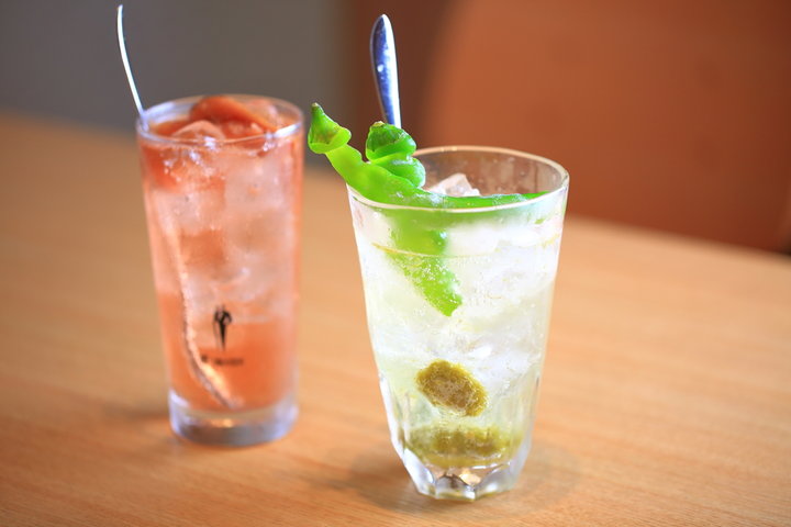 左:いちじくをまるごと使ったサワー、右:万願寺とうがらしのサワー(各550円)