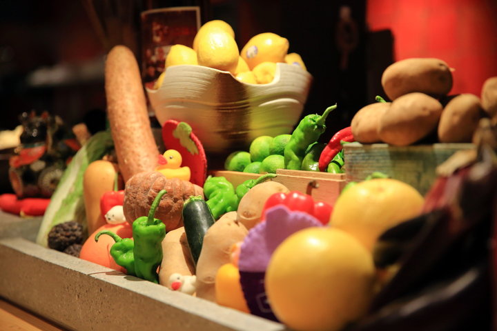 カウンターの中央には野菜をかわいらしくディスプレイ