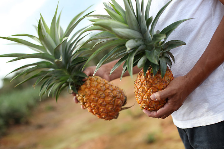 海水をかけて育てている「カナンスローファーム」の塩パイン。人気商品『塩パインバター』の原料。