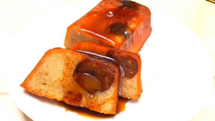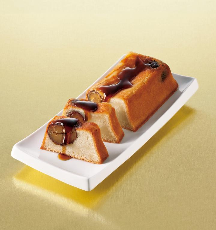 続いては、洋と和が融合した自信作「金のみたらし栗ケーキ」(1950円)。白餡と熊本県産しぶ皮栗を加えた生地をしっとりと焼き上げたケーキで、こがしバターのなんとも良い香りが漂います。