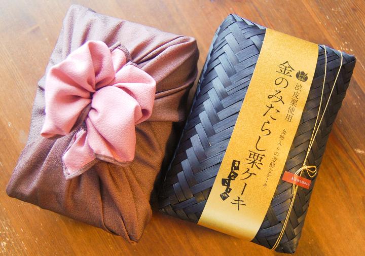 熊本の芦北醤油を使ってつくるみたらしだれは、金粉入り! 黒い籠の落ち着きのあるパッケージなので、お祝い事の贈り物や手みやげにもぴったり。プラス300円で6種類から好みの色が選べる風呂敷に包んでくれます。
