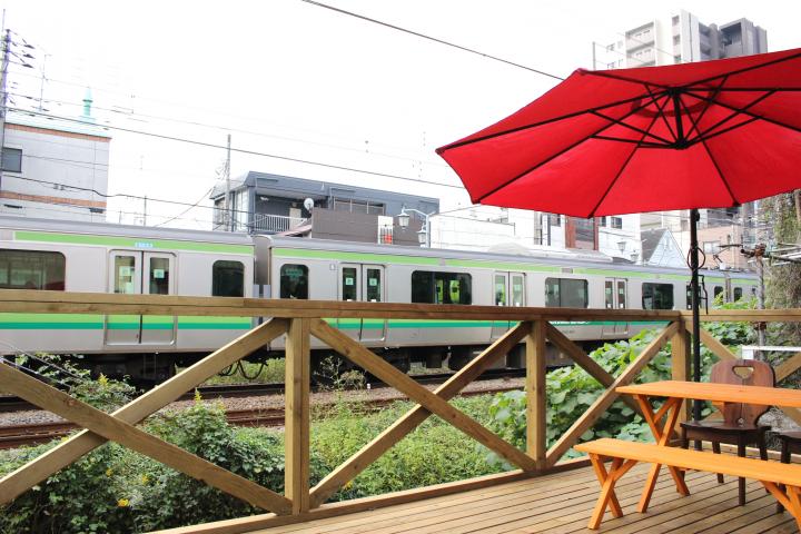 お店の裏側には、すぐ横を横浜線の電車が走る屋外テラス席もあり、秋晴れの気持ちのいい日は青空の下でのんびりとランチをいただくのもおすすめですよ。