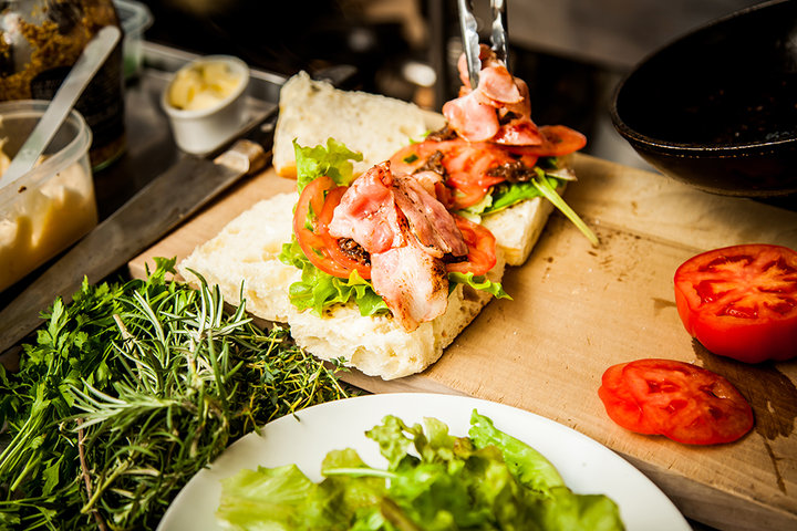 夕食時には飛騨の野菜(時期により異なる)を使ったイタリアンのフルコース、朝食時には自家製パンや野菜たっぷりのサラダなどが提供される。飛騨トマトが一番美味しい時期は秋ごろ。(写真提供:オーベルジュ飛騨の森)。