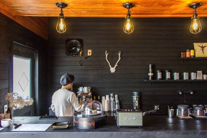 にこやかな笑顔で出迎えてくれた、オーナーの稲田さんは地元・奈良の出身。大阪の有名店でバリスタをしていた経験を活かして、お店はすべて自分でリノベーションをされたのだとか。黒を基調に落ち着いた印象でありながらも、木目の暖かさも感じて、とても居心地の良い雰囲気です。