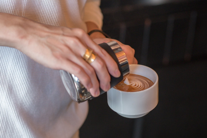 美しいラテアートに、コーヒーに合う特注スイーツ