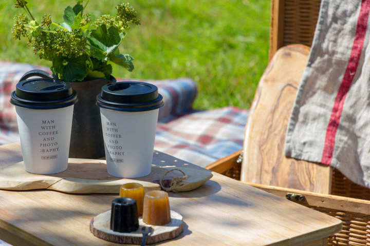 カヌレ羊羹(250円/個)ドリップコーヒー(ホット/アイス)(400円)テイクアウトのカップもおしゃれ♪