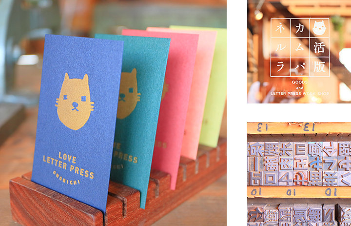 猫好きにたまらない、猫グッズ。坂道を降りた場所にある「活版カムパネルラ」で、オリジナルの活版印刷に挑戦してみてはいかがでしょう。活版印刷とは、活字を組み合わせてつくった版で紙に圧をかけインクを転写する印刷方法。でこぼことした手触りが温かみを感じさせます。カムパネルラといえば、宮沢賢治の童話『銀河鉄道の夜』の登場人物。そういえば、主人公ジョバンニは活版所でアルバイトしていましたね。