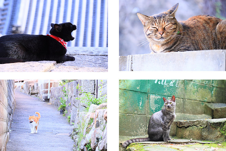 [PHOTO POINT]見上げたり、覗いたり、振り返ったり。曲がりくねった路地で猫たちを探すのは、まるで宝探し。カメラの高さを上げ下げするだけでも、新鮮な目線になれるから不思議です。