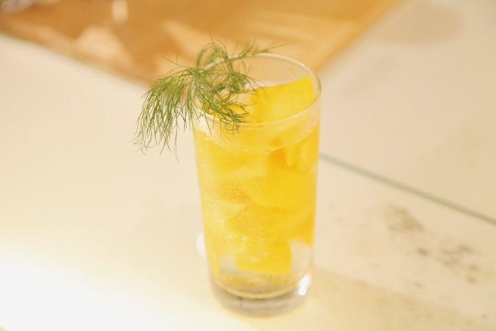 さっぱりとした甘さの「冷凍マンゴーサワー」(900円)。ディルのさわやかな香りも鼻をくすぐる