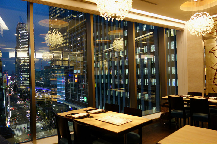 和食ダイニング「花ごよみ東京」があるのは、「ミシュランガイド東京」に7年連続で掲載されている「ホテル龍名館東京」最上階の15階。ホテルのフロントロビーも同じフロアにあり、エレベーターを降りると2方向に設けられた窓から、オフィス街の夜景が広がります。落ち着いた雰囲気の和食店ですが、店内からも夜景を眺められ、眼下に流れる車のバックライトがなかなかロマンチック。