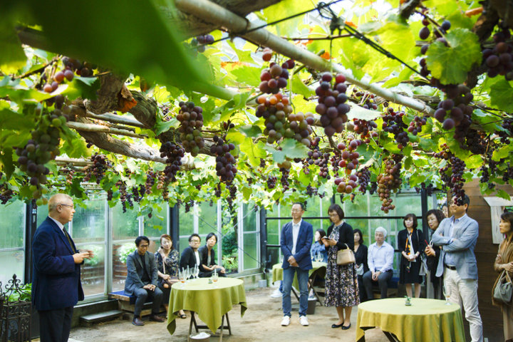 レセプション会場となった『オズガーデン』では、樹齢40年の一本の葡萄の木から、たくさんの果実がたわわになってる