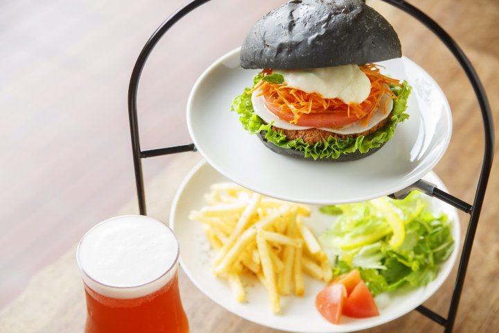 京都名物をサンドした真っ黒なハンバーガーが話題のカフェダイニング