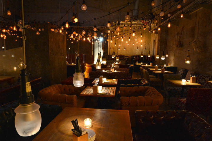 天井一面に映し出された星空と、空中で幻想的に光る無数のランプ。銀座のビルに入る「and people ginza」は、幻想的な雰囲気が人気のレストランです。色や形もさまざまなソファや、タイルがはめ込まれたテーブルなど、どこか異国情緒のあるインテリアと相まって、非日常的な空間が広がります。うっとりと店内を眺めながら食事ができるドラマティックなレストランです。