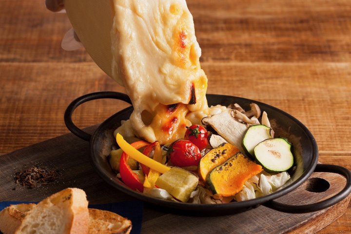 こちらでは、素材のおいしさをいかしたオリジナルのチーズ料理を用意。なかでも「当店名物! 石窯で焼き上げた野菜の鉄板焼きバーニャカウダ ラクレットチーズソース」は、本場の味にこだわり、風味が強めでコクのあるスイス産ラクレットチーズを使用しています。 野菜は自社農園や農家から直接届く新鮮なものを使い、石窯の高温の熱によって一気に焼くことで旨みを逃さないようにしているのだそう。たっぷりかけられたとろとろのチーズを絡めながらいただくと、濃厚な味わいが口の中でいくえにも重なり合います。