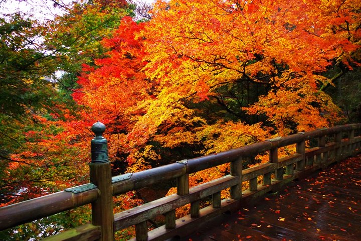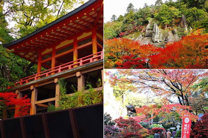 今年で開山1300年を迎える「那谷寺」は、泰澄大師が開いたと言われる高野山真言宗別格の本山で、白山信仰が根付き、自然の神を崇めてきました。 普段は侘び・寂びを感じさせる古刹ですが、紅葉の見頃の時期には錦を織りこんだような目にも鮮やかな景色が広がります。楓月橋からの奇岩遊仙境の眺めが見事です。