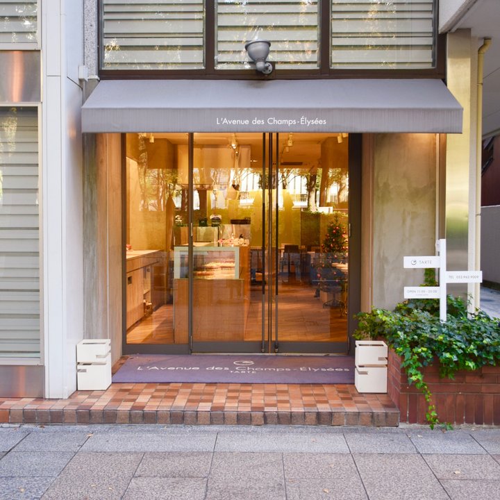 名古屋テレビ塔の北、久屋大通沿いにあるタルト専門店「L'Avenue des Champs-Élysées(ラヴニュー デ シャンゼリゼ)」。 久屋公園を彩る木々のシルエットが写り込むガラス扉を開けると、色とりどりのフルーツがキラキラと輝き、まるでジュエリーショップを訪れたような優雅な雰囲気に包まれます。