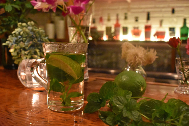 バラのカクテルと並んで評判なのは、自家栽培のフレッシュなミントでつくるモヒート。モヒートの本場・キューバで使われる香りの強いミント「イエルバブエナ」をたっぷり使うのがこだわりです。