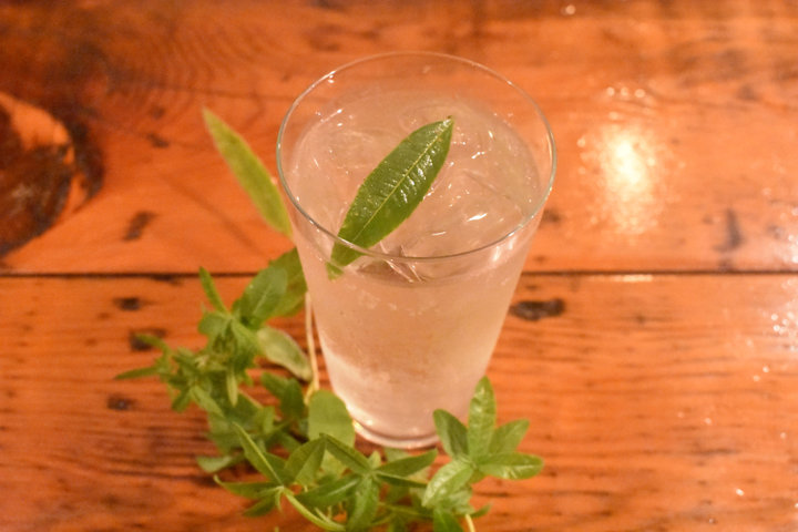 ドリンクメニューはアルコールを中心にラインナップ。なかでも一番人気なのは、バラのリキュールでつくるカクテル「ミクロソーダ」です。グラスに顔を近づけると、甘く芳醇なバラの香りがふわりと漂いロマンティックな気分に。シュワッとした炭酸の泡とともに、口の中にもバラの香りが広がります。