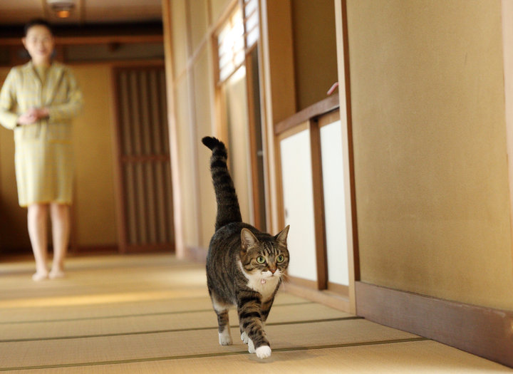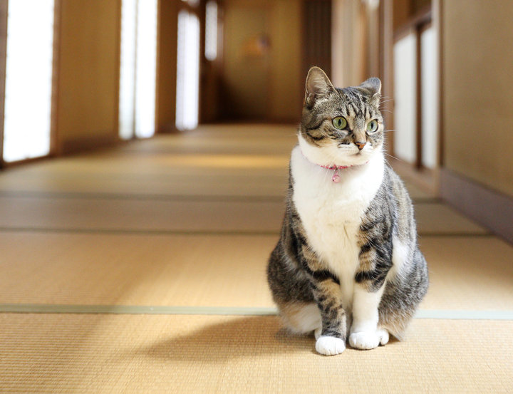 まいちゃんは、子ねこのころ、近くの舞鶴山で妹ねことともに若旦那に保護され、女将さんと暮らすようになりました。女将さんのことが大好きすぎるまいちゃんは、いつも一緒にいようといつしか女将さんにくっついて出勤するように。今では出勤時間の9時には、女将さんを玄関で待っているそう。