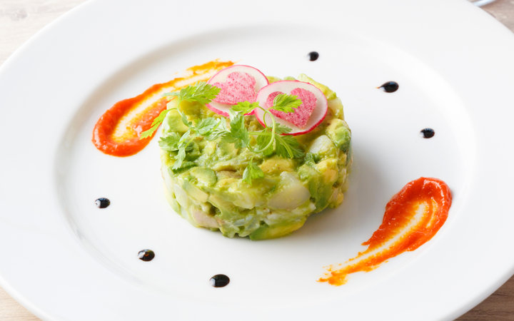 前菜やサラダ、リゾット、パスタなどアラカルトも豊富です。「アボカドと本日魚介のタルタル」はサイコロ状に切ったアボカド、ホタテや京丹後産天然鯛などの海鮮を塩やレモン、オリーブオイルであえた一品。さっぱりとした味つけで、ストレートに素材の持ち味を楽しむことができます。 魚介や野菜は、京丹後で漁師を営む兄弟や、久美浜で農家を営む親戚からの直送なので、贅沢に旬の味覚を料理に取り入れることができるのだそう。
