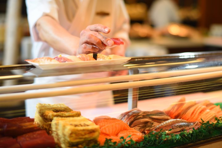 海の幸が豊富な宮城ならではの、新鮮な魚介が味わえる寿司コーナーも評判です。好きなネタを選ぶと職人がすぐに握ってくれるので、まるで寿司専門店にいるようなぜいたくな気持ちに。刺身も注文後にサクから切り分けてくれます。