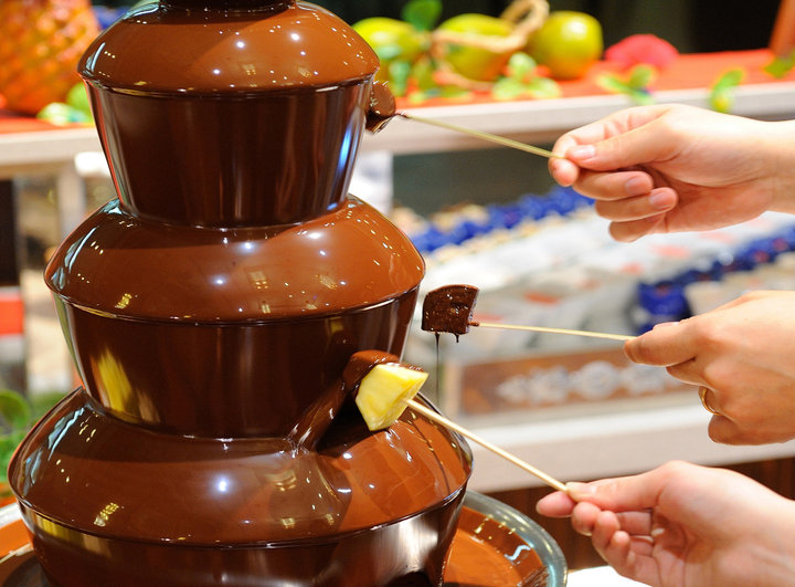 バケットやフルーツ、マシュマロにチョコレートをたっぷりかけて