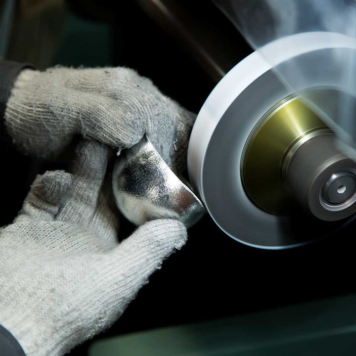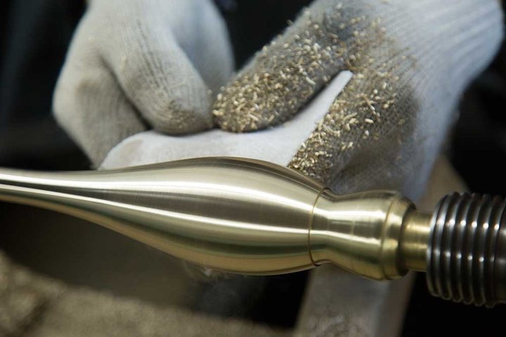 錫の他にも真鍮や青銅などによる個性的なプロダクトを展開。真鍮製品の仕上げの様子。