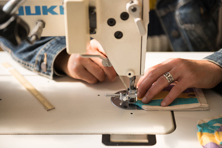山に入る際の通行証をイメージして作られたカードケース「ヤマモリ」の縫製を行う。